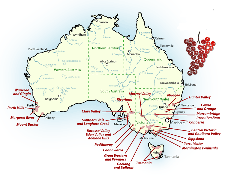 - Australia: El descubrimiento de Australia (Nueva Holanda) por el navegante Willem Janszoon que avistó la costa oeste de la península del Cabo York en el año 1606. Cuando el almirante Arthur Phillip se hace gobernador de Nueva Gales del Sur a finales del siglo XVII hace ver a sus compatriotas la idoneidad de las tierras y del clima para el cultivo de la vid. Rose Hill (conocido hoy en día como Parramatta) fue uno de los primeros asentamientos australianos donde se cultivó la vid en esas tierras. Es conocido que en el año 1788, la denominada primera flota (en inglés denominado: First Fleet) ya llevaba entre su cargamento semillas de clarete a las colonias de Australia. En los primeros años no había un excesivo interés por parte de los colonos europeos en el vino, los convictos que poblaban las tierras tenían paladares poco acostumbrados al vino (apenas sabían cultivarlo) y preferían otras bebidas fuertes como podía ser el ron. A pesar de estas preferencias mayoritarias, pronto se fueron cultivando vides en diferentes zonas de Nueva Gales del Sur (Hunter Valley es renombrado incluso en la actualidad) y se llegaron a publicar libros acerca de su cultivo, principalmente dirigidos a los colonos, uno de los más afamados fue escrito por uno de los pioneros del vino en Australia: James Busby.