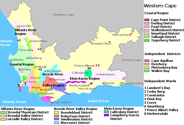 La revocación del edicto de Nantes en 1685 por parte de Luis XIV, que autorizaba la libertad de culto a los protestantes calvinistas; hace que algunos de ellos logren escapar a Holanda y finalmente acaben viajando a Stellenbosch, Paarl y Franschhoek (la esquina francesa). Estos refugiados llevan consigo vides y el conocimiento de viticultura necesarios para poder desarrollar los cultivos en Sudáfrica. La región pasa a estar bajo el control británico en 1814 y a partir de este instante Inglaterra se convierte en el principal mercado para los vinos de Sudáfrica. El descubrimiento de minerales preciosos en Sudáfrica hace que haya un incremento de la población y con ello una mayor demanda de vino. El mercado local crece hasta la llegada de la phylloxera en 1885 que produce la devastación de todas las plantaciones. El vino sudafricano no se recupera hasta el final de la primera guerra mundial.
